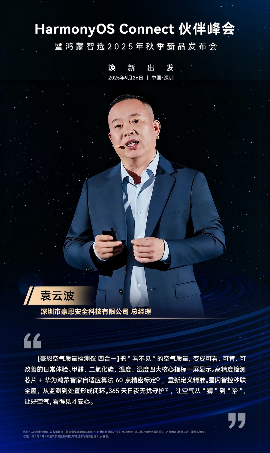 HarmonyOS Connect's 2025 Autumn New Product Launch Event, with the heavyweight appearance of the Haoen Air Quality Detector, a subsidiary of Zhong'an Science and Technology Co., Ltd!