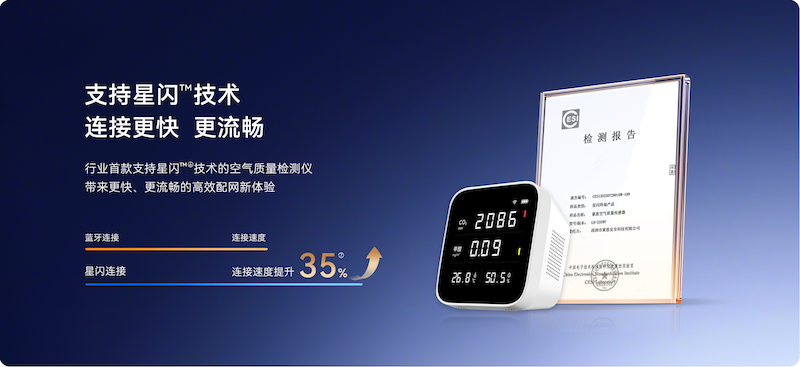 As the industry's first air quality monitor supporting StarFlash connectivity technology, the product achieves breakthrough improvements in connection speed, stability, and power consumption, delivering a smoother network setup experience for users.