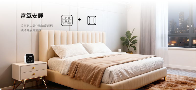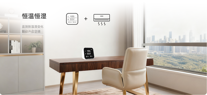 Constant Temperature & Humidity: When the iHORN air quality monitor detects abnormal temperature or humidity, it automatically activates the air conditioner or humidifier to create a comfortable home environment and safeguard family health.