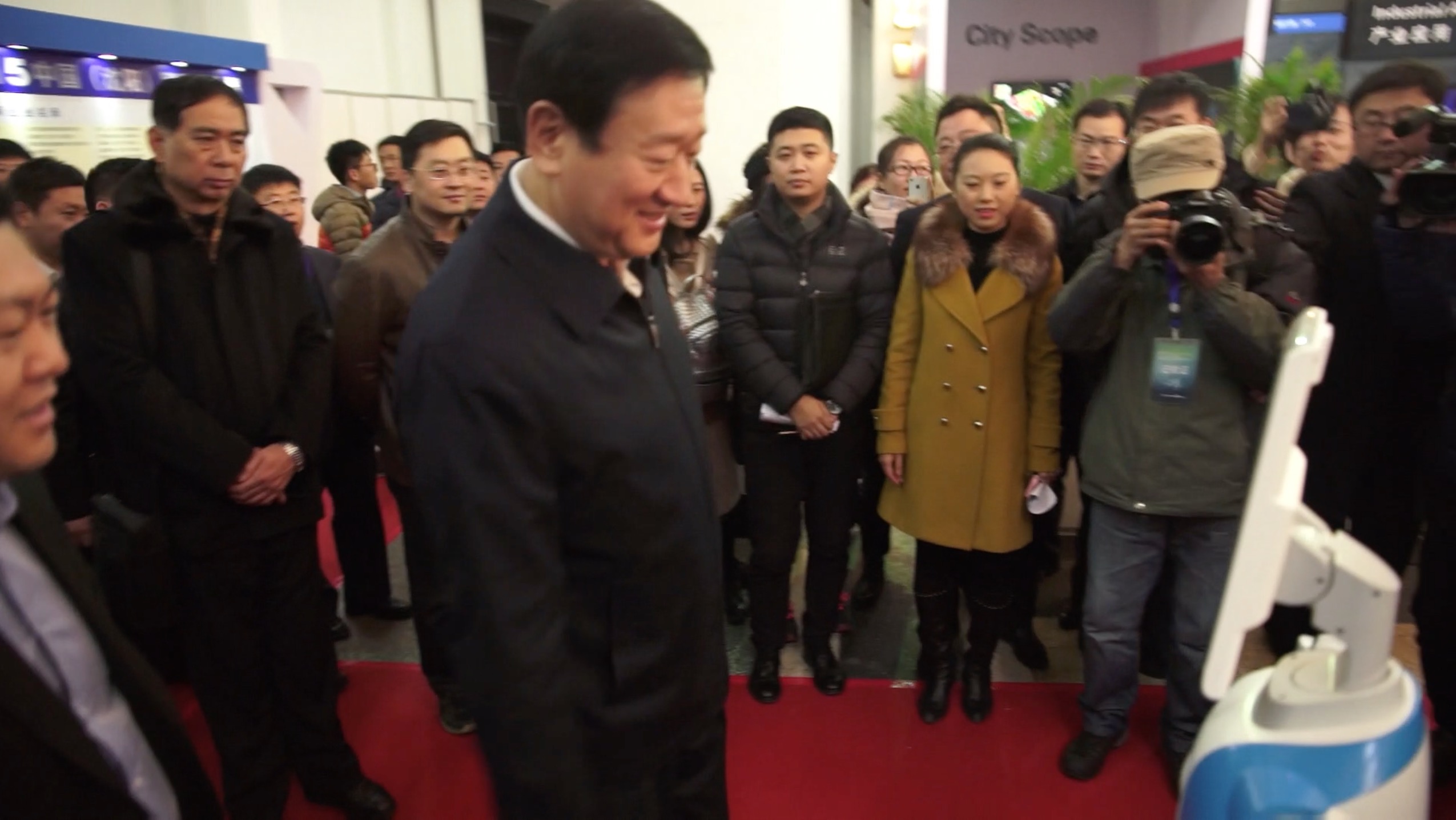 3日上午9點,沈陽市市長潘利國、沈北新區(qū)書記龐洪波、市政府副秘書長肖楓、市政府副秘書長王曉林、市經(jīng)信委主任隋莉、市大數(shù)據(jù)局局長陳大為、市服務(wù)業(yè)委副主任張利、蒲河新城管委會常務(wù)副主任周鵬舉、沈北新區(qū)副區(qū)長張文國一行在中安科股份有限公司技術(shù)總監(jiān)兼研發(fā)中心總經(jīng)理龔灼、中安科副總裁兼東北、華北、華中區(qū)域中心總經(jīng)理郭鵬、中安科總裁助理兼市場發(fā)展中心總經(jīng)理王穎、中安科股份東北區(qū)中心總經(jīng)理高偉等人的陪同下參觀了中安科展示區(qū)域,詳細(xì)了解了中安科涉及城市綜合管理平臺、城市公共安全、智慧建筑、智慧醫(yī)療(醫(yī)療+養(yǎng)老)、智慧教育、智慧交通六大領(lǐng)域的智慧城市整體解決方案。沈陽市市長潘利國還與中安消智能服務(wù)型“替身”機(jī)器人進(jìn)行了互動。