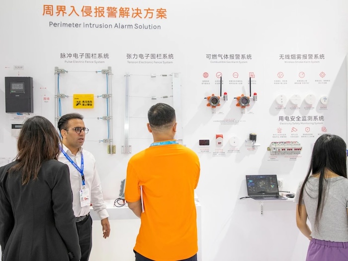 周界入侵報警解決方案現(xiàn)場展示了脈沖電子圍欄系統(tǒng)和張力式電子圍欄系統(tǒng),由管理軟件、圍欄主機、控制鍵盤和前端探測圍欄組成,報警功能豐富,具備多種聯(lián)網(wǎng)與對接方式,系統(tǒng)兼容性強,可提升周界安全等級,廣泛應(yīng)用于小區(qū)、學(xué)校、工廠、機場、醫(yī)院等場所的周界防護。