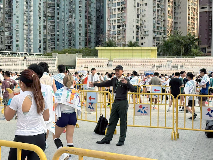 本屆賽事規(guī)??涨?,吸引了來自全球近10,000名選手參賽。面對高密度人流、多區(qū)域管控及賽事動線復(fù)雜性,澳門衛(wèi)安依托豐富的大型活動安保經(jīng)驗,構(gòu)建了"三位一體"安保體系:在起點/終點設(shè)置多層安防圈,通過智能防護與人工巡邏結(jié)合實現(xiàn)無死角守護;賽道沿線部署機動小隊,實時應(yīng)對突發(fā)狀況;觀眾區(qū)域采用分區(qū)導(dǎo)流方案,確保人車分流、秩序井然。