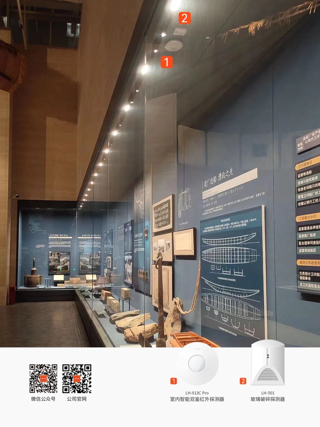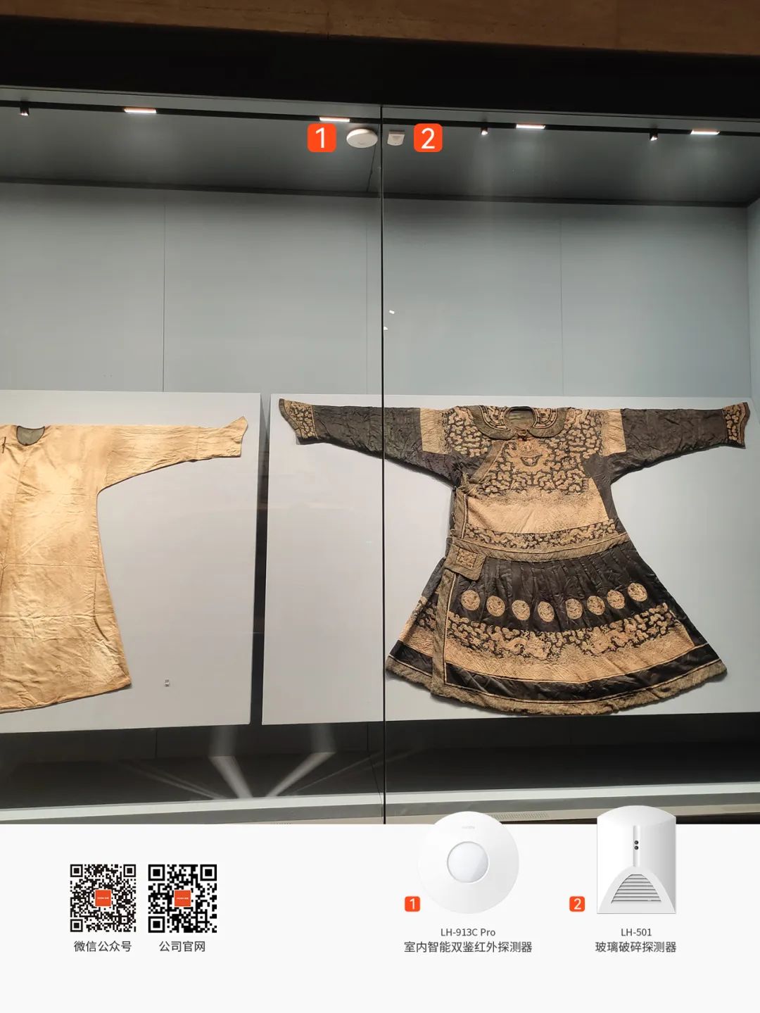 而在每個展柜內(nèi)部,豪恩也安裝了玻璃破碎探測器,及時感知對展柜的惡意敲擊、爆破以及高低溫攻擊等破壞行為,為珍貴的文物筑起第二道保護墻。
