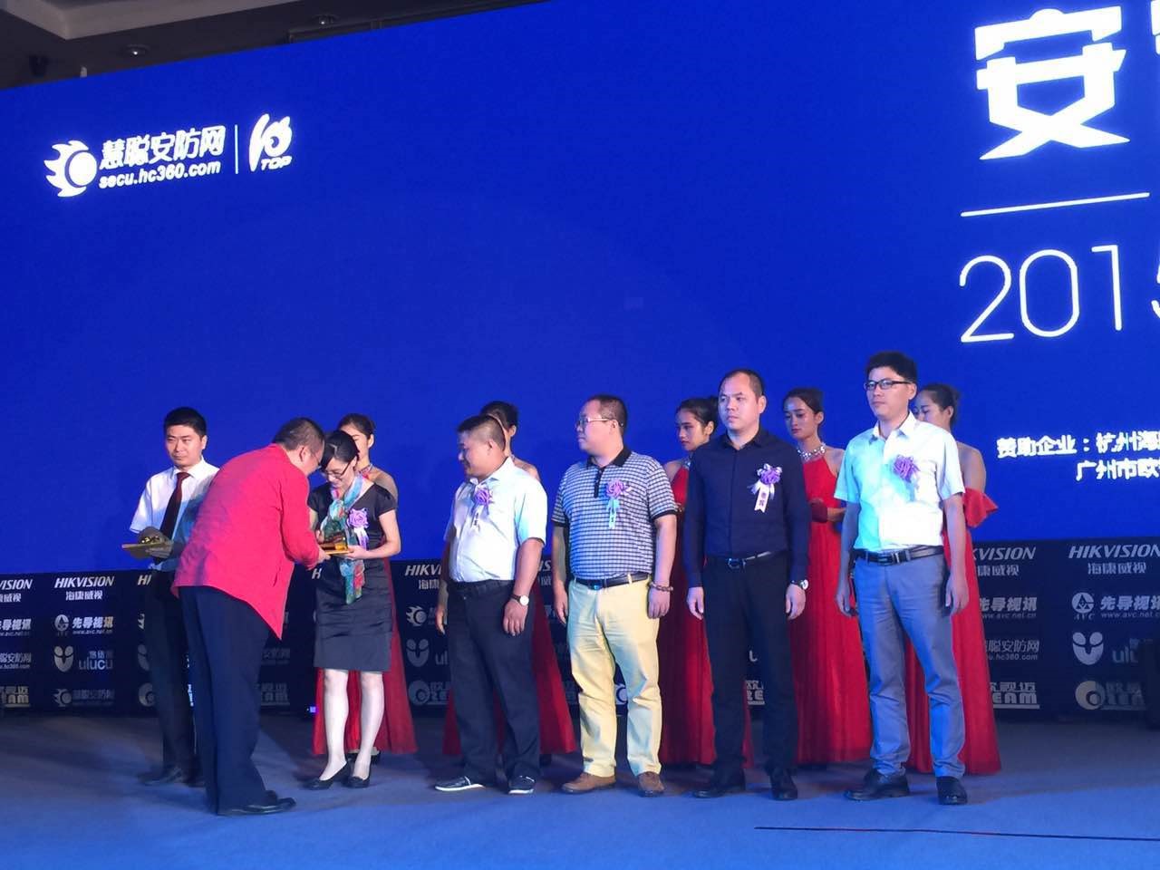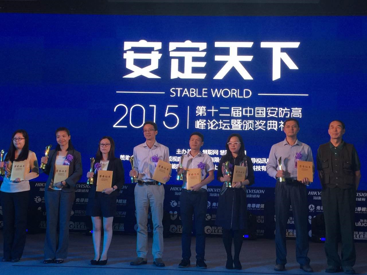 圖1 右2為中安科股份技術(shù)總監(jiān)兼研發(fā)中心總經(jīng)理龔灼先生代表中安消領(lǐng)取“2015安防十大品牌獎(jiǎng)”