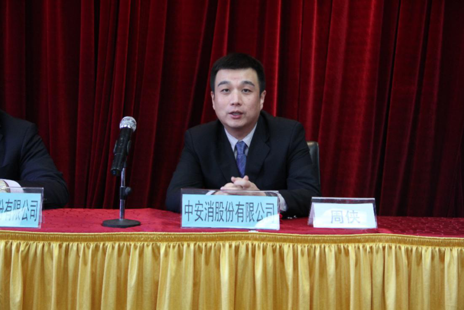 左七:中科曙光董事、高級(jí)副總裁、曙光云計(jì)算技術(shù)有限公司聶華 左八:中安科股份副董事長(zhǎng)兼總裁周俠 左九:中安消技術(shù)副總裁兼華北區(qū)域、華中區(qū)域中心總經(jīng)理郭鵬 右五:中安科股份市場(chǎng)發(fā)展中心總經(jīng)理王穎 右四:中安消技術(shù)總裁助理兼智能交通中心總經(jīng)理朱恒偉