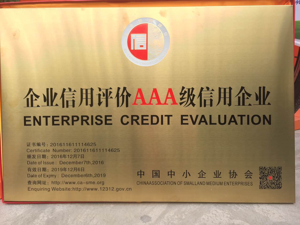 榮獲國(guó)家商務(wù)部“企業(yè)信用3A級(jí)” 評(píng)價(jià)