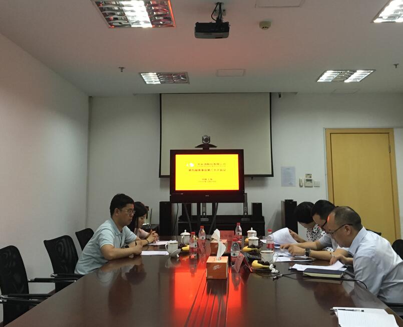 董事會(huì)會(huì)議現(xiàn)場(chǎng) 右排右起:董事:吳巧民(右三)、付欣(右二);左排左起:監(jiān)事:吳展新(左二)、陳亞南(左一);董事會(huì)秘書:王蕾(右一)