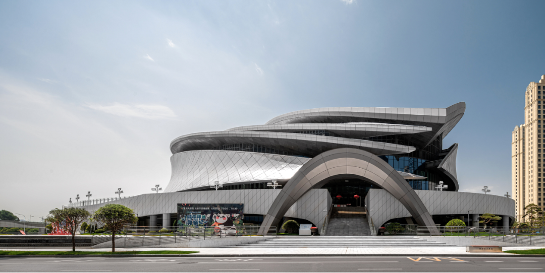 寶雞大劇院是寶雞的核心地標(biāo)式建筑之一,設(shè)計(jì)凸顯了寶雞精神中“聞雞起舞、開放創(chuàng)新”的元素,將鳳凰作為建筑的主要靈感來(lái)源之一,從空中鳥瞰寶雞大劇院,其屋頂流線像是三片鳳凰羽翼,隨河邊的清風(fēng)漂浮在城市之中。