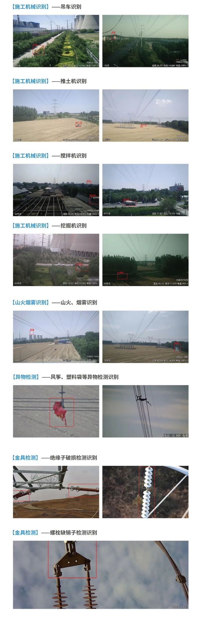 明景輸電線路AI算法可實(shí)現(xiàn)輸電在線監(jiān)測、電力作業(yè)現(xiàn)場安監(jiān)方面的多項(xiàng)AI分析識別功能。