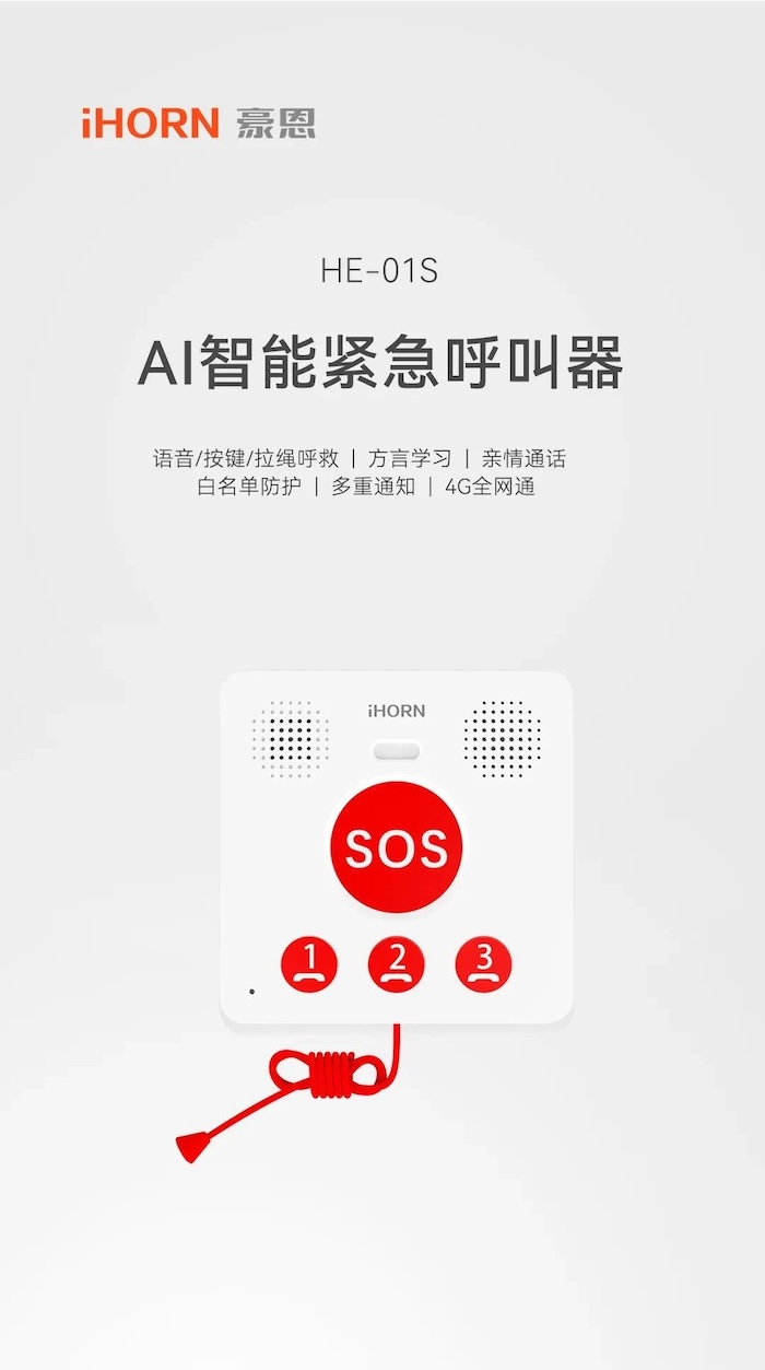 新品推介:中安科子公司豪恩AI智能緊急呼叫器,語(yǔ)音呼叫求助,救援更及時(shí)