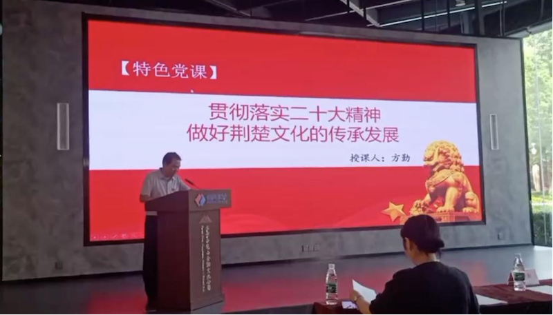 其次,湖北省文物考古研究院黨委書記、院長方勤為大家講授黨課《貫徹落實二十大精神 做好荊楚文化的傳承發(fā)展》。社區(qū)九旬老黨員、志愿軍周學(xué)頤更是來到現(xiàn)場,親身為大家講述其在抗美援朝戰(zhàn)爭上九死一生的經(jīng)歷,激勵大家熱愛祖國、感恩生活。