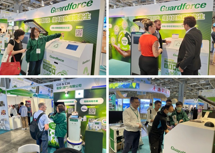 近日,2023年澳門國際環(huán)保合作發(fā)展論壇及展覽(2023 MIECF)圓滿結束。中安科子公司澳門衛(wèi)安(Guardforce)與多位國際環(huán)保精英互相交流,并為公眾介紹多個智能環(huán)衛(wèi)方案,包括智能垃圾箱、智能廚余回收箱、自動分類回收箱、UVC LED消毒燈、智能消毒機器人、智能空氣消毒機及智能環(huán)衛(wèi)監(jiān)察系統(tǒng)等等。